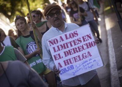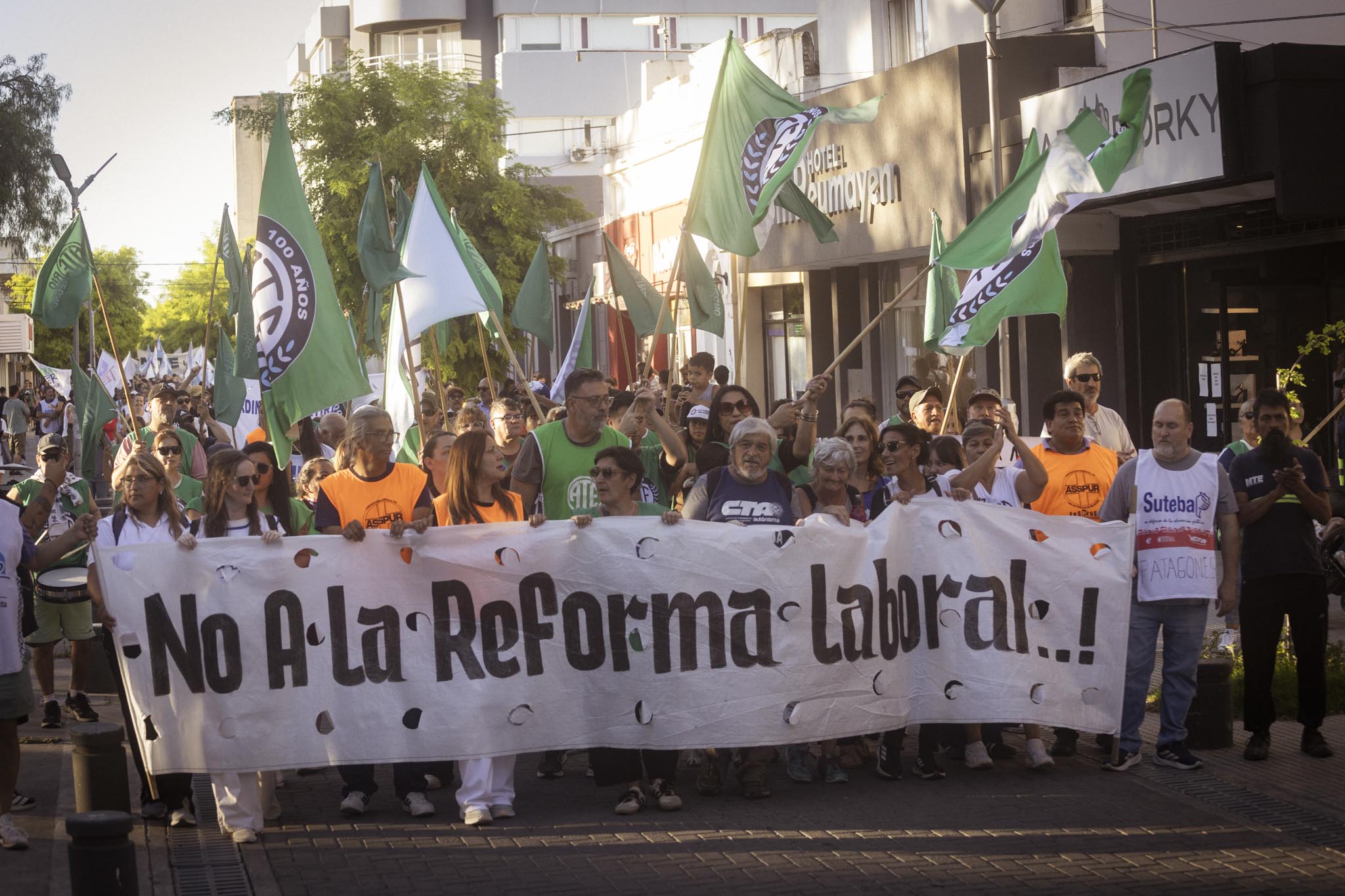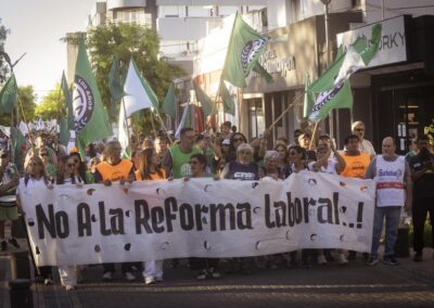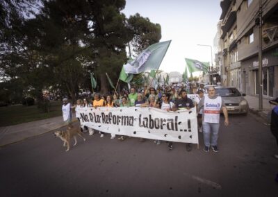 Mientras tanto en la capital provincial, sindicatos y organizaciones sociales marcharon, pese a la ausencia de la CGT, para manifestar el rechazo a este proyecto de ley retrogrado.