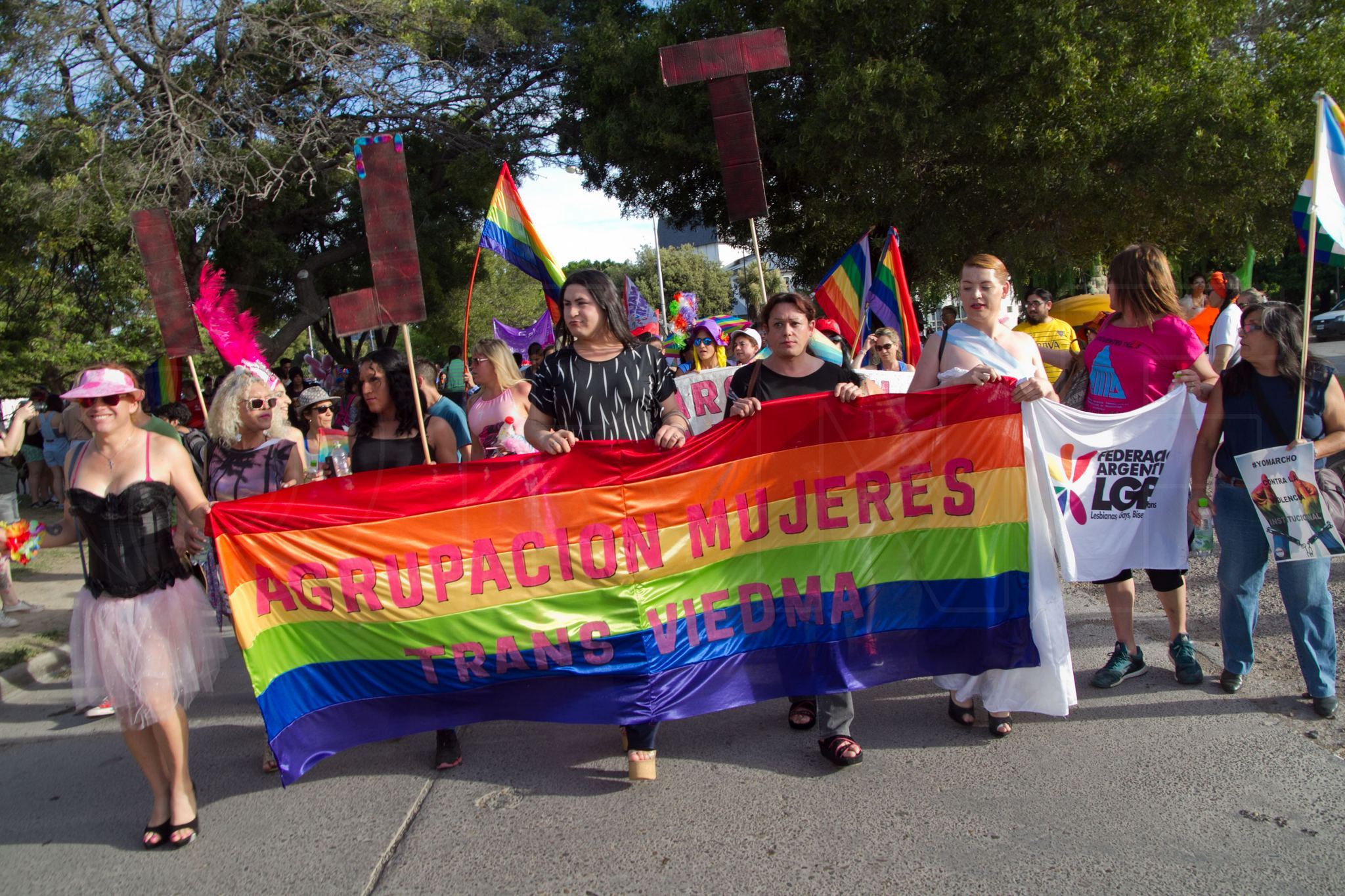 La marcha fue convocada por el colectivo de mujeres trans de Viedma. Brindaron su apoyo militantes sociales trans de Capital Federal, Bahia Blanca y la ciudad de Roca (Rio Negro)