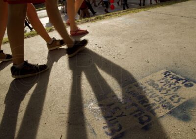 La concentración comenzó a las 17 hs en el Centro Municipal de Cultura, para marchar por la costanera viedmense hasta los jardines del Ministerio de Economía, bajo las siguientes consignas.